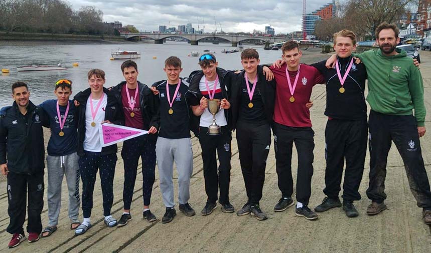The victorious Shiplake College crew with coach Hugh Mackworth-Praed