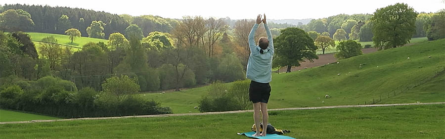Now locked down in rural Derbyshire, I practise an Upward Reach stretch while greeting the morning sunlight as it advances up the valley